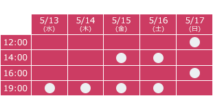 | 公演期間 | 2015/5/13(水)~5/17(日) |