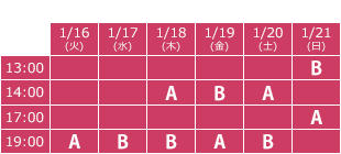 | 公演期間 | 2018/1/16(火)~1/21(日) |