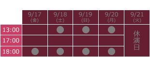 | 公演期間 | 2021/9/17(金)~9/26(日) |